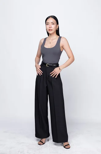 This extra-thick, double-layered rayon tank top, crafted with hidden seams, is comfortable and non-irritating to the skin. A basic tank top from Amalyn_Collections, perfect for work, can be mixed and matched with trousers and a blazer for a sophisticated and elegant look.
